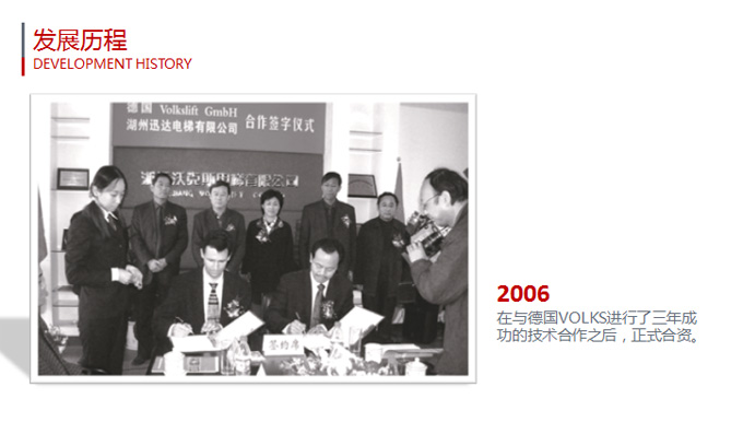 沃克斯迅達電梯有限公司是首批國家A級電梯制造和A級安裝改造維修企業(yè)。其前身湖州迅達電梯有限公司在中國境內擁有40年生產(chǎn)銷(xiāo)售及安裝各類(lèi)電梯及扶梯的寶貴經(jīng)驗。沃克斯迅達電梯有限公司總投資3.5億人民幣,注冊資本2.58億人民幣,總占地面積150000平方米,高度108米的試驗塔內建有7.0m/s超高速等電梯,公司的產(chǎn)品質(zhì)量及技術(shù)研發(fā)能力已處于行業(yè)領(lǐng)先水平。 2016年,沃克斯迅達電梯有限公司與世界電梯業(yè)巨頭——瑞士迅達集團正式合資,雙方開(kāi)始全面合作,公司發(fā)展步入嶄新階段。